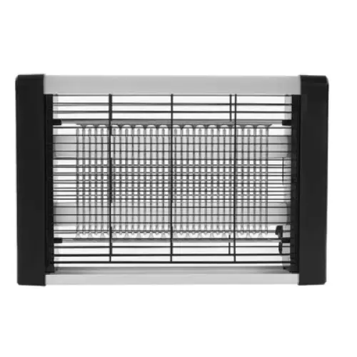 - ATRAE A LOS INSECTOS VOLADORES MEDIANTE LUZ NEGRA Y LOS ELIMINA CON UNA REJILLA ELECTRIFICADA DE 800V. CUENTA CON UN GANCHO PARA COLGARLA Y SUS DIMENSIONES SON 35.1 X 24 X 6 CM.