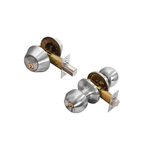Combo Cerrojo Doble Cilind/pomo Tubular Entrada Acero Inox Blister