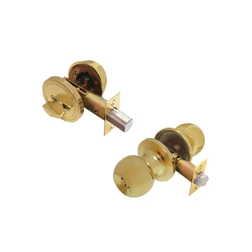 Combo Cerrojo Doble Cilin/pomo Tubular Entrada Laton Brillante Blister