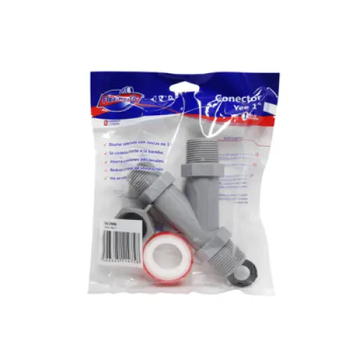 Descripción:- CONECTOR YEE FABRICADO DE POLIPROPILENO CON ADITIVO CONTRA LOS RAYOS UV. POR SU MATERIAL NO SE OXIDA NI CORROE. DISEÑADO CON ROSCAS NPT DE 1" EN TODOS SUS EXTREMOS, SIENDO COMPATIBLE Y FÁCIL DE INSTALAR. CON TUERCA ERGONÓMICA PARA FACILITAR SU USO. SU FUNCIÓN PRINCIPAL ES REALIZAR UN PURGADO O CEBADO DE LA BOMBA DE AGUA. INCLUYE CINTA TEFLÓN.
