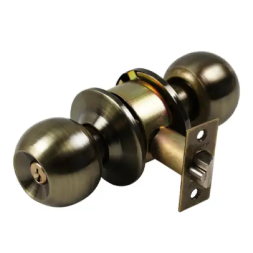 CERRADURA POMO CILINDRICA ENTRADA C/LLAVE BOLA LATON ANTIGUO CAJA