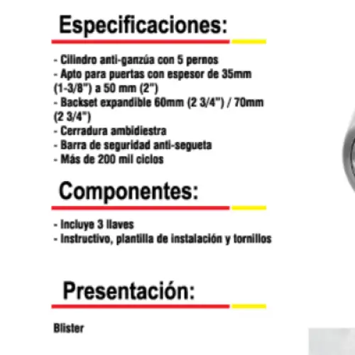 Descripción:- CERROJO DE SEGURIDAD AÑADE Y REFUERZA LA SEGURIDAD A LAS PUERTAS, DURABILIDAD, VERSATILIDAD Y SEGURIDAD. CARACTERISTICAS: 3 LLAVES.